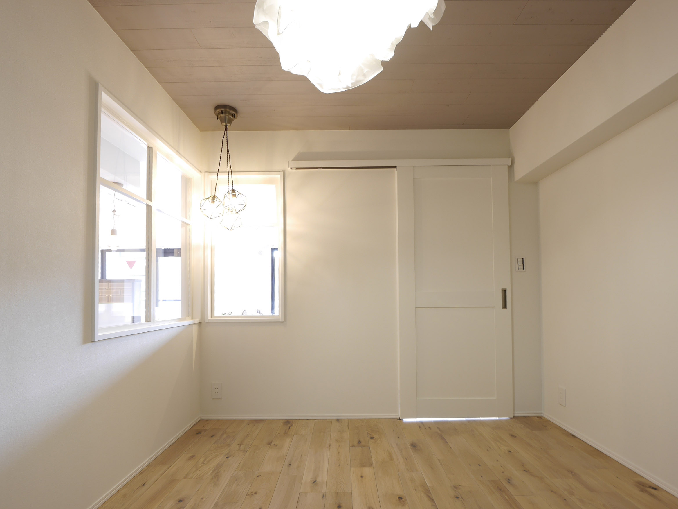 可愛い室内窓や天井にも無垢材を張ったオリジナルデザイン!