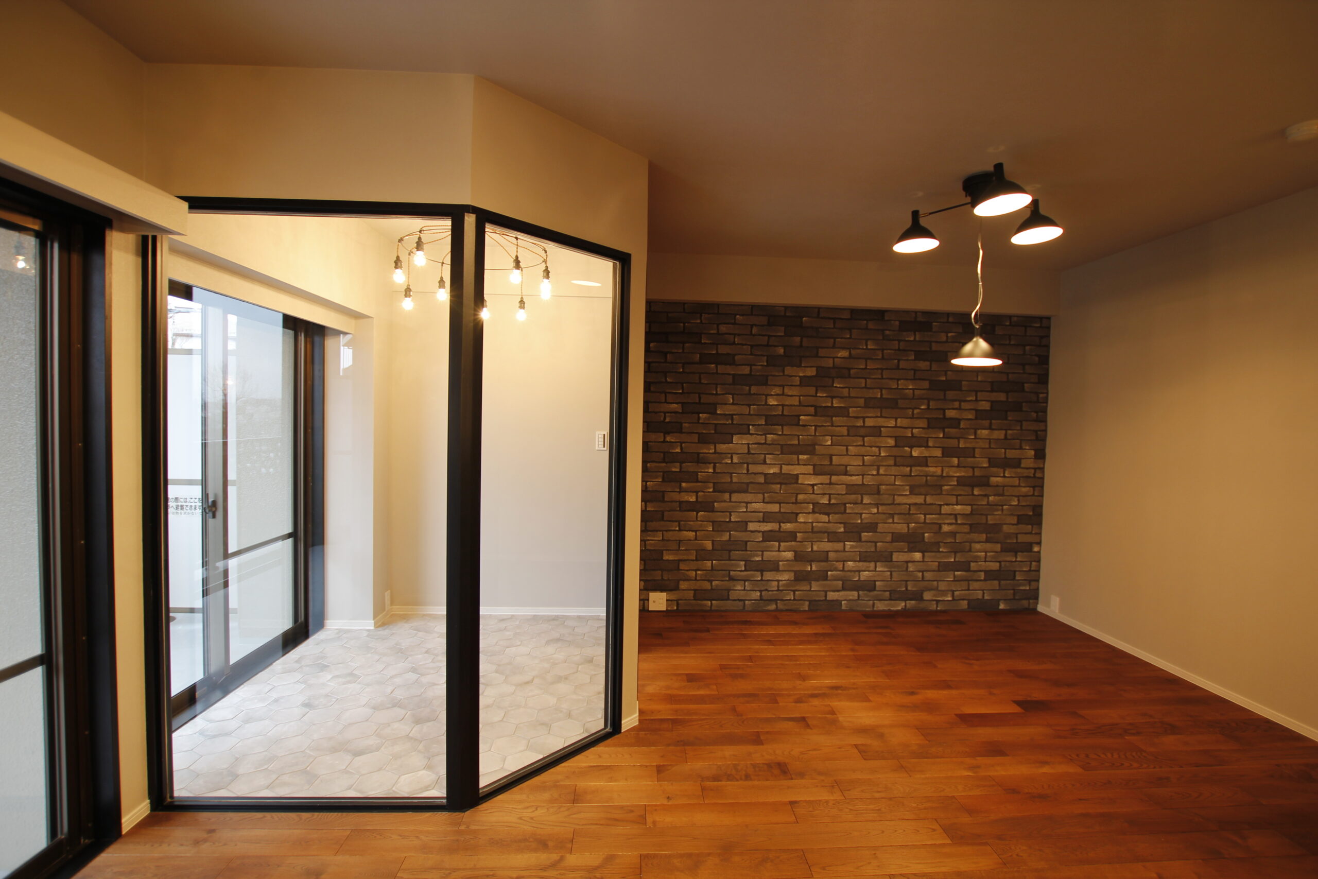 サンルームはタイル張りにして快適なリラックスルームへ。