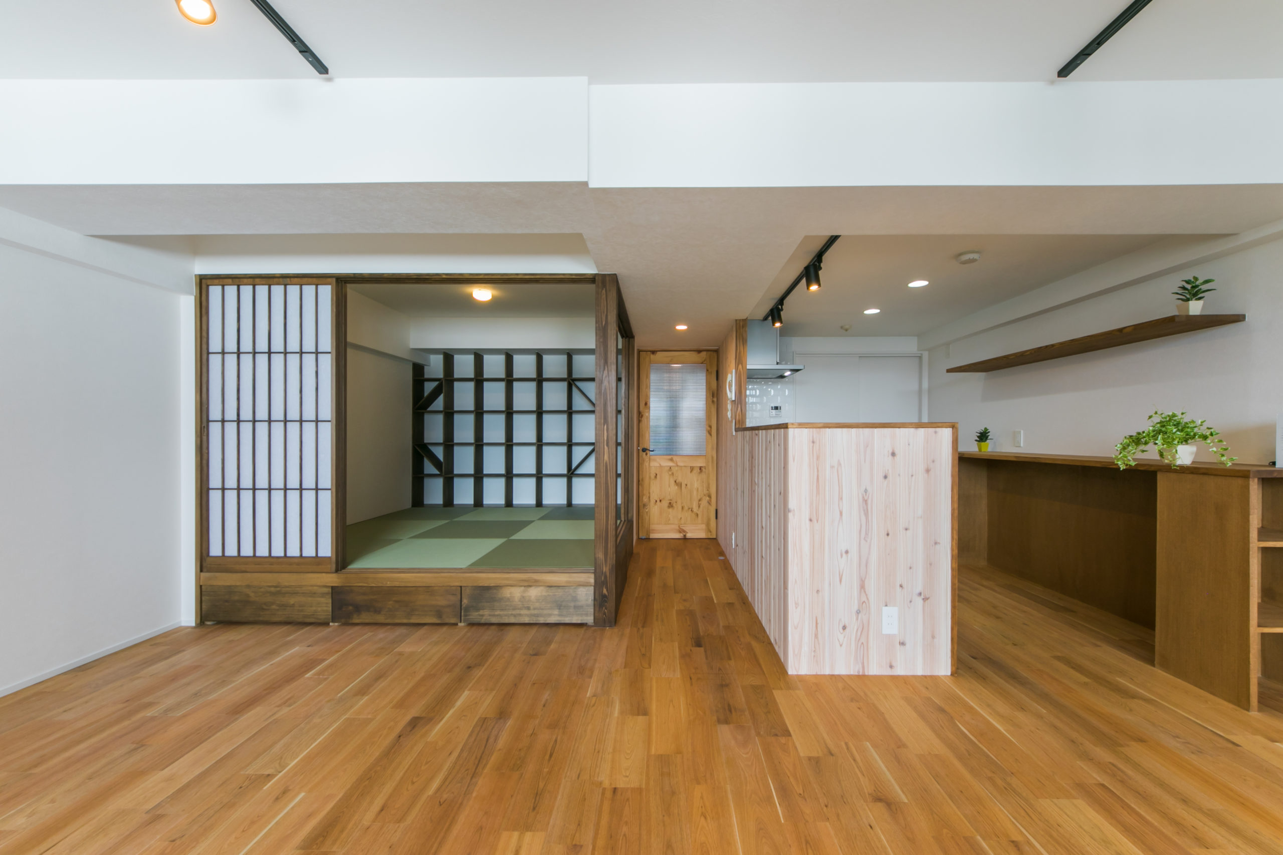 造作で創った小上がりの和室がとても印象的なリノベーション。