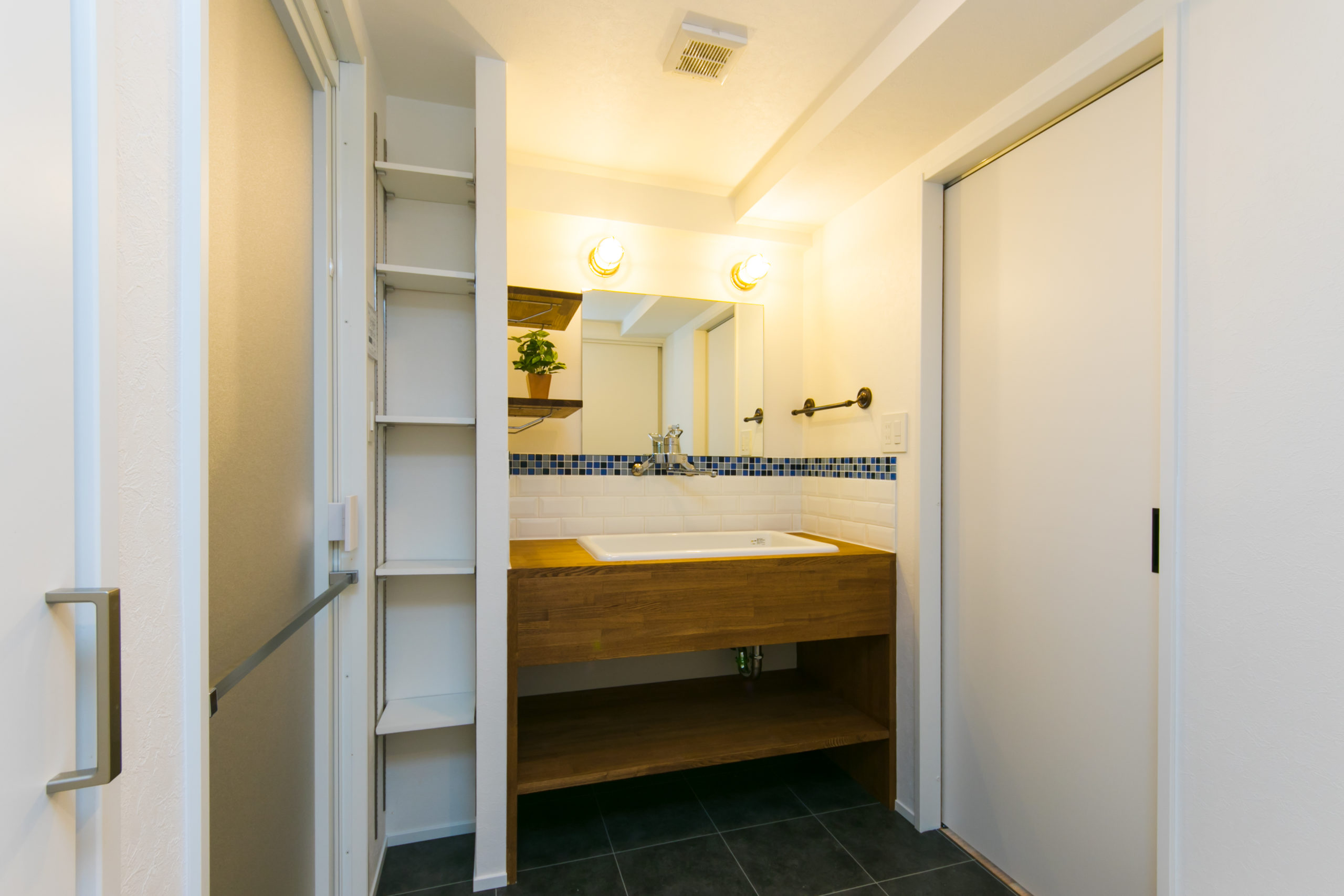 無垢の扉やパネル、こだわりのタイルや洗面台など、「自分Style」の暮らしが完成