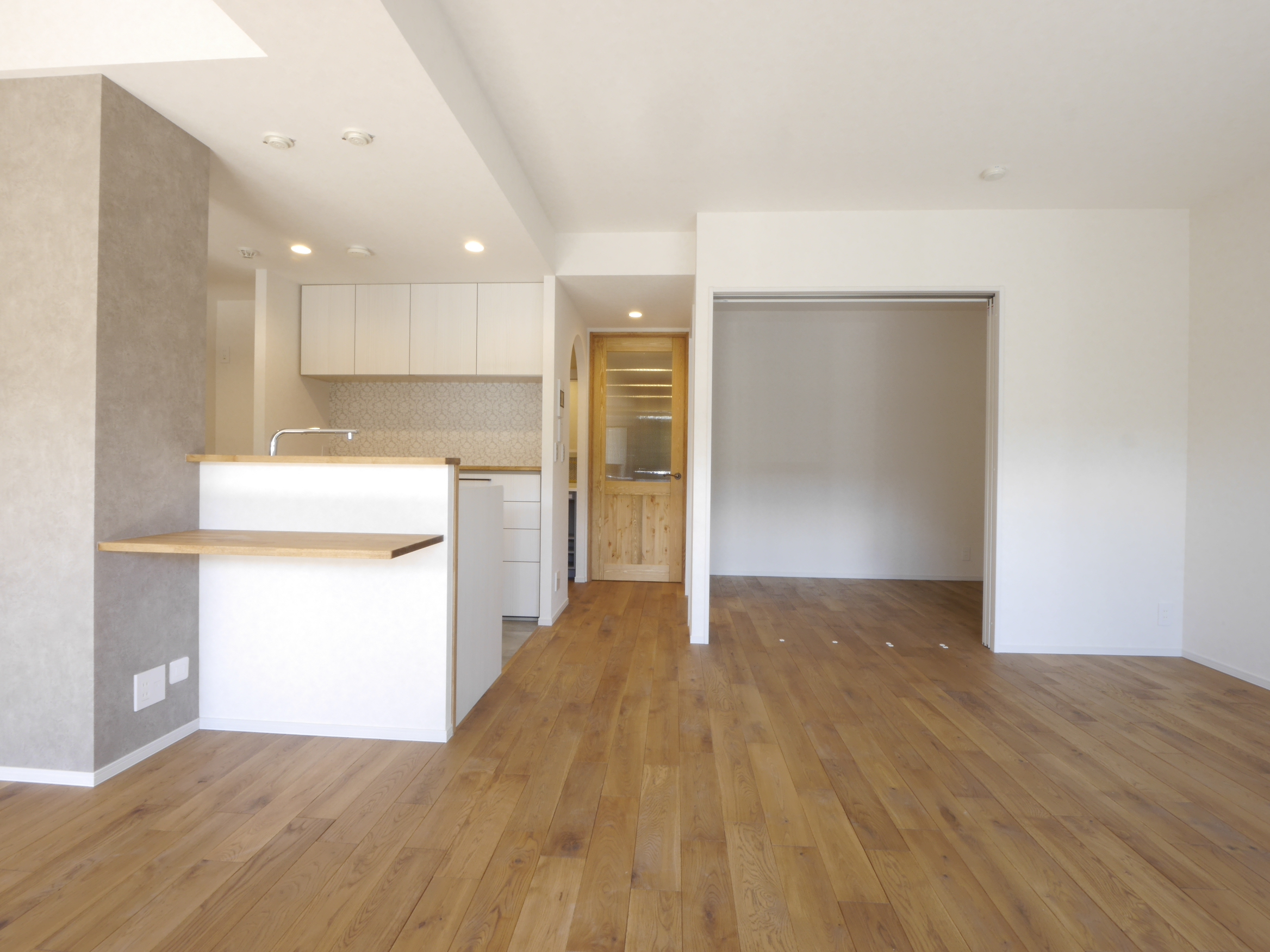国産の天然無垢フローリングが心地よいナチュラル空間。
